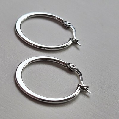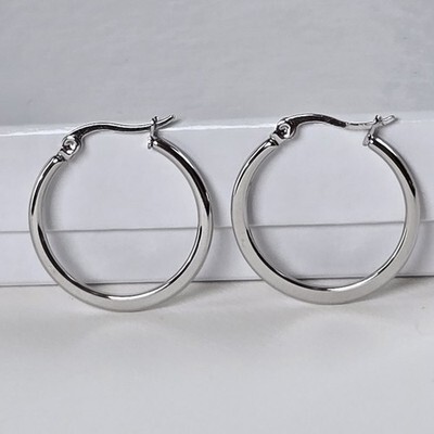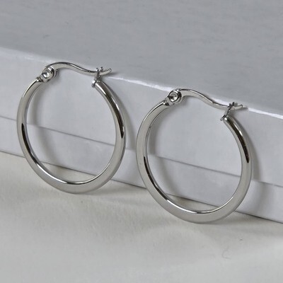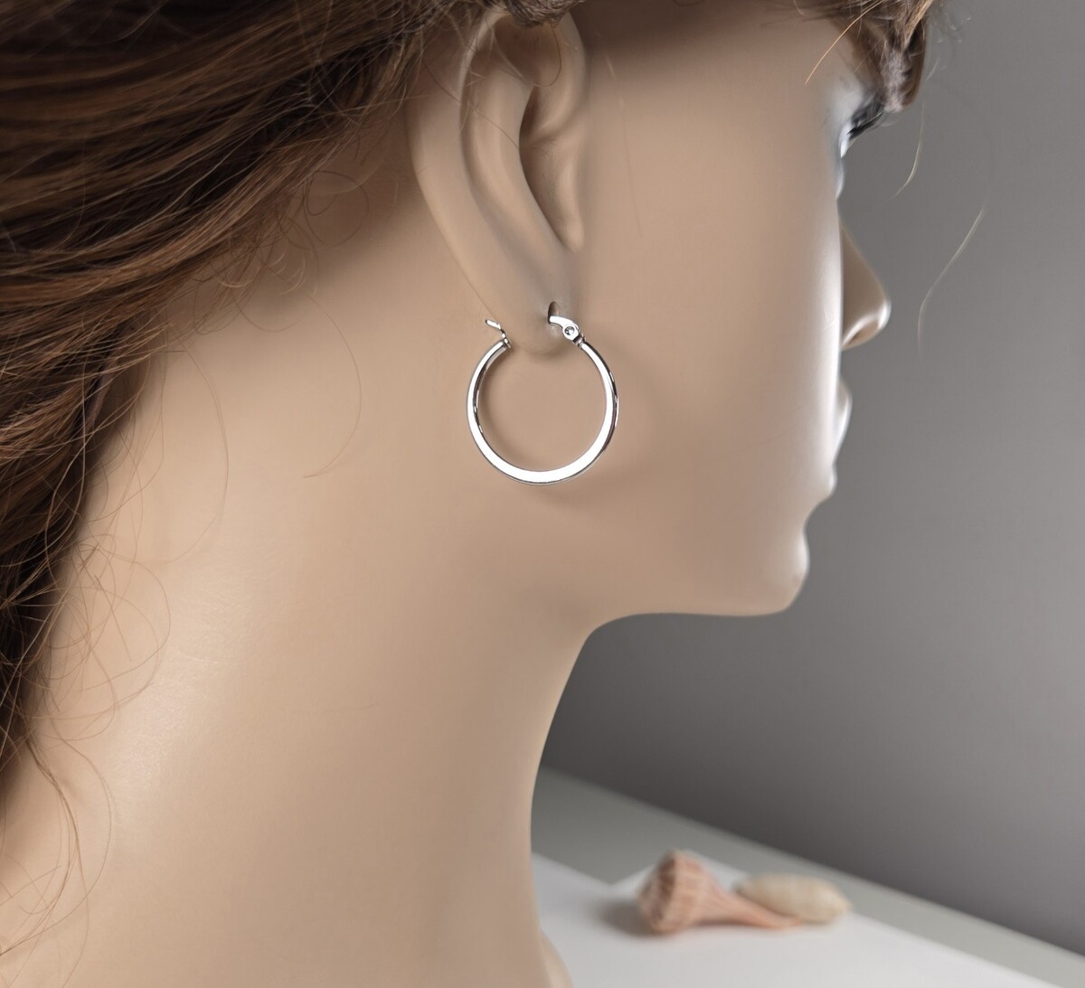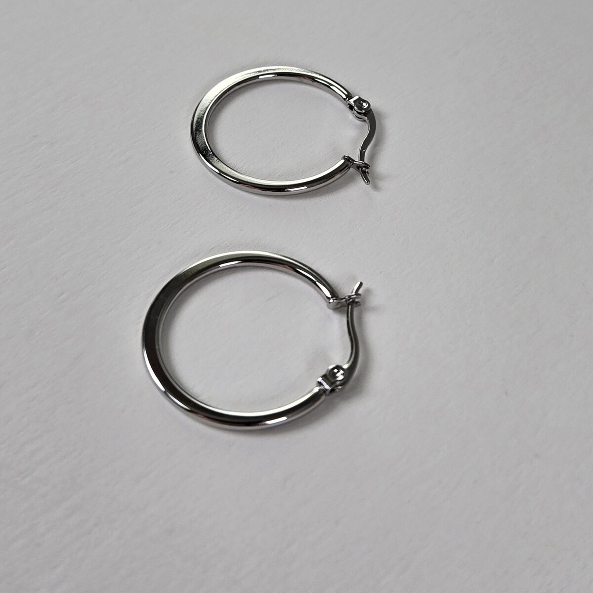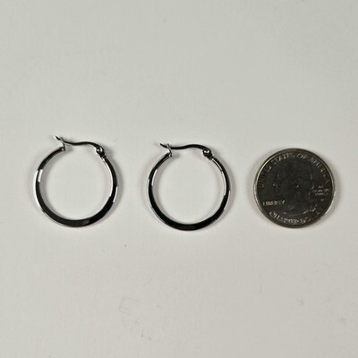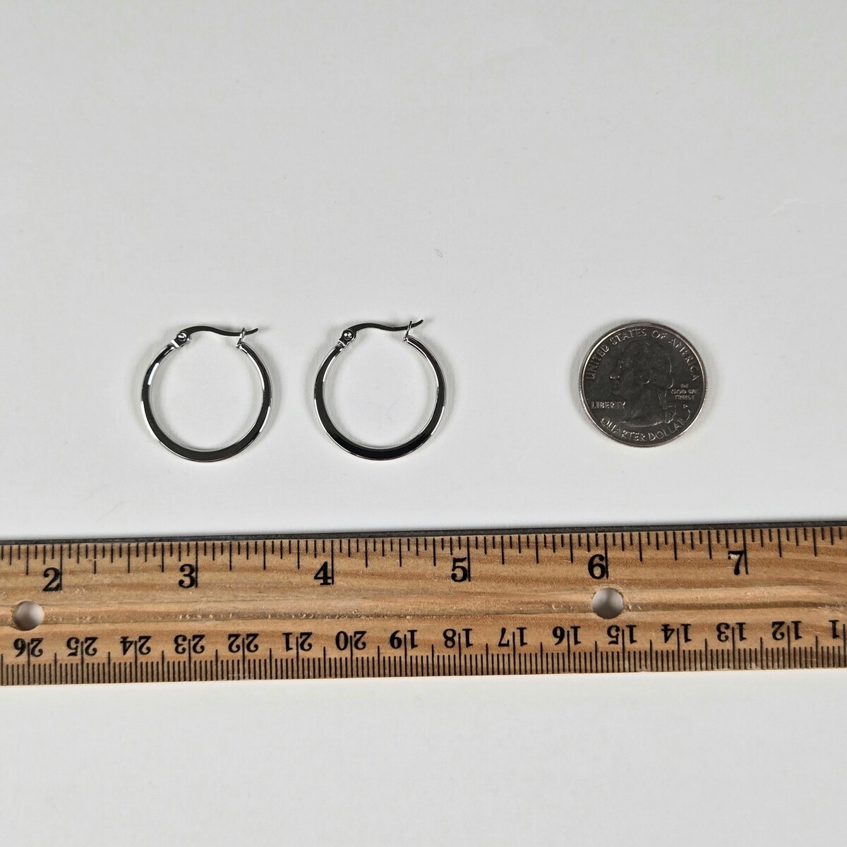 Premium .75 inch surgical stainless steel hoop earrings, proudly USA-made in Destin, Florida. Built for durability while still being lightweight for all-day wear they're hypoallergenic, nickel free, water, rust tarnish proof. These are solid core and not hollow tubes. Sleek, flat sided polished surgical stainless survives beach days, workouts and showering after the gym.