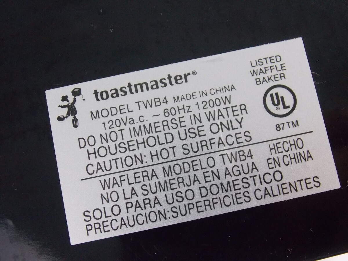 Toastmaster Electric Belgian Waffle Maker Baker Iron Family Size Model TWB4 NICE