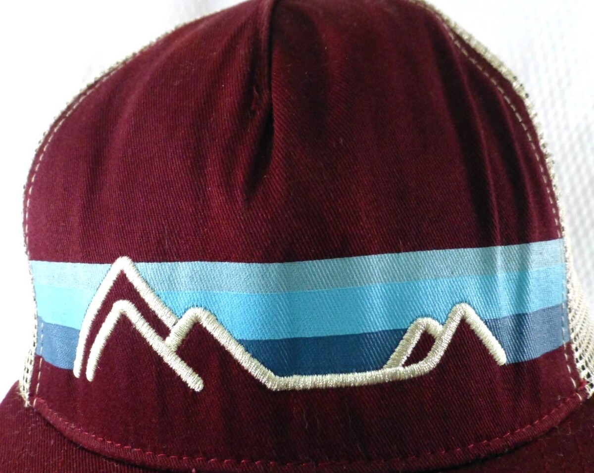 Vintage Mountains Trucker Hat Maroon & Mesh Snapback Unisex Adjustable Retro Out