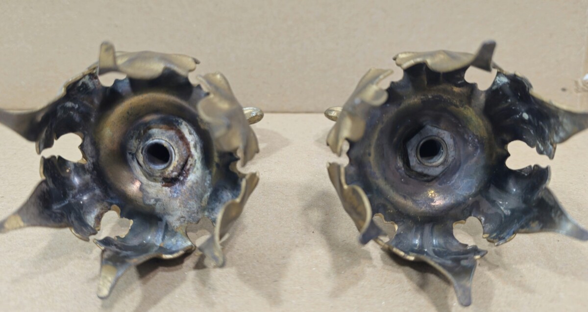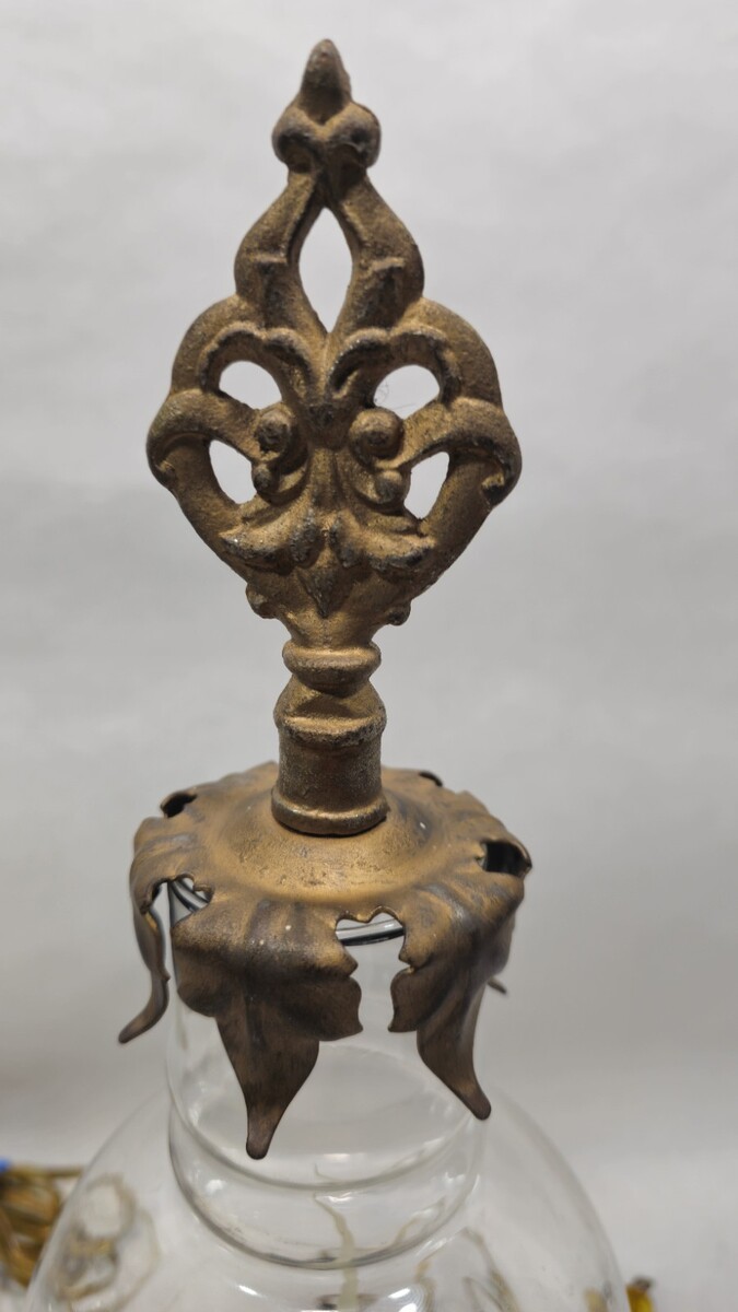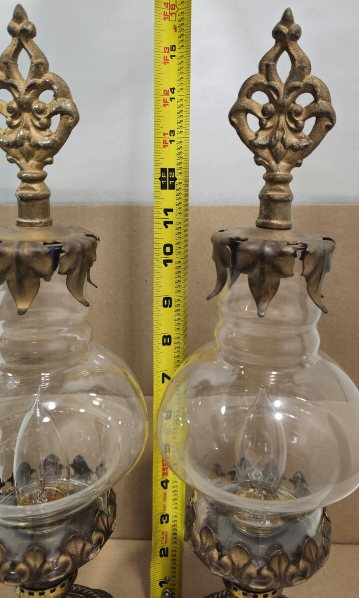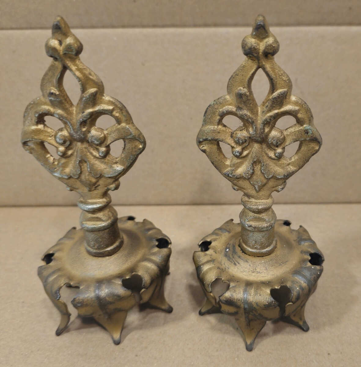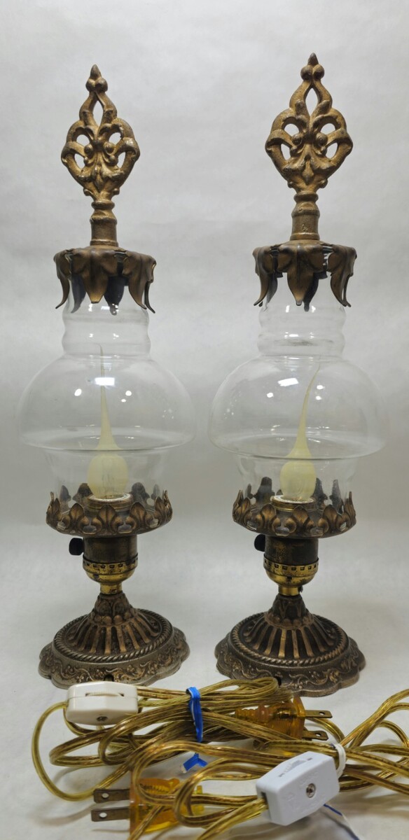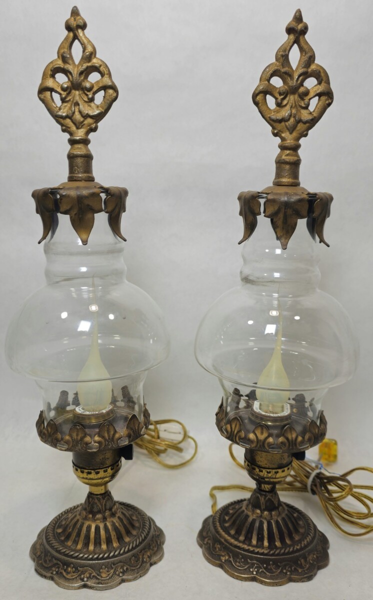 Pair Cast Metal Electric Parlor Lamps Fleur-de-lis Toppers Victorian