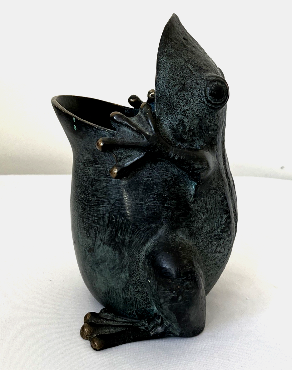 SPI San Pacific International Bronze Metal Frog Open Mouth Vase Figurine 7 1/2"