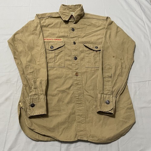 VTG BSA Boy Scouts Of America Uniform Shirt Metal Buttons 36" Chest 25" Long.