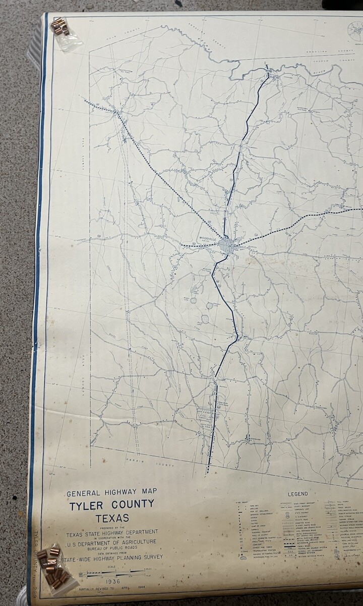 Vintage Map Tyler County Texas General Highway Map Revised Sept. 1946