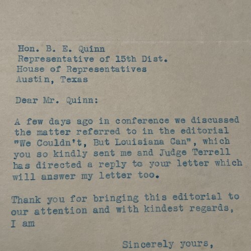 Antique Letter Texas Railroad Commission Signed Ernest O thompson 1935.