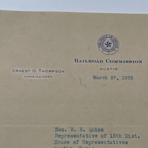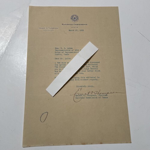 Texas Railroad Commission Signed Ernest O thompson 1935 Antique Letter