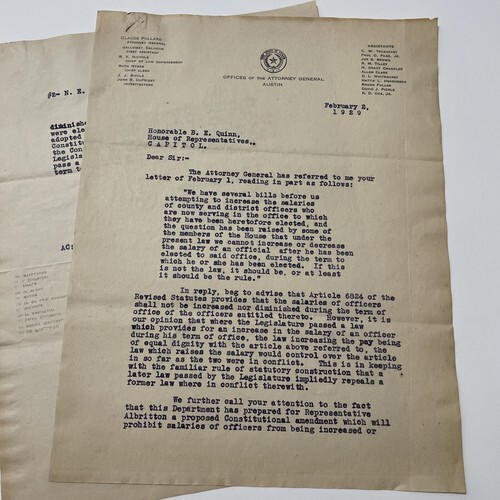 Texas Attorney General Office Letter 1929 and 40 similar items