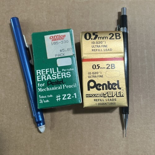 Vintage Pentel P205 0.5mm Mechanical Pencil w/erasers & Leads Almost Full