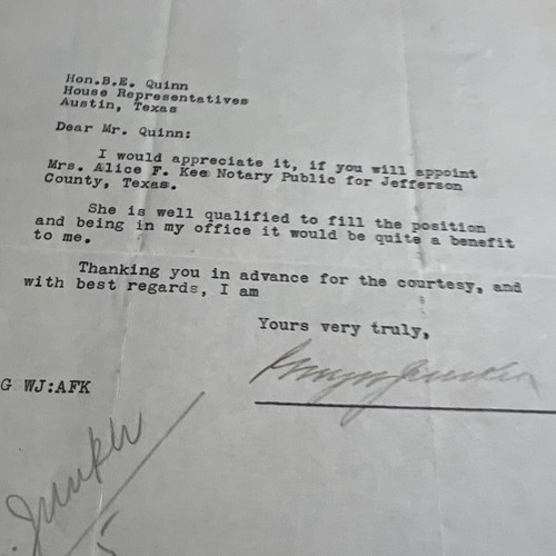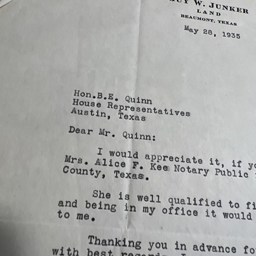 Vintage Letter Beaumont Texas 1935 Guy Junker Business Man Real Estate Signed