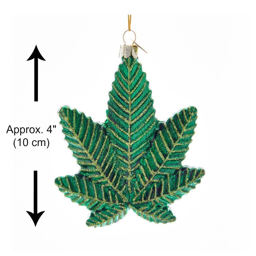 CANNABIS LEAF GLASS ORNAMENT 4" Marijuana Pot Green Kurt Adler Christmas Tree