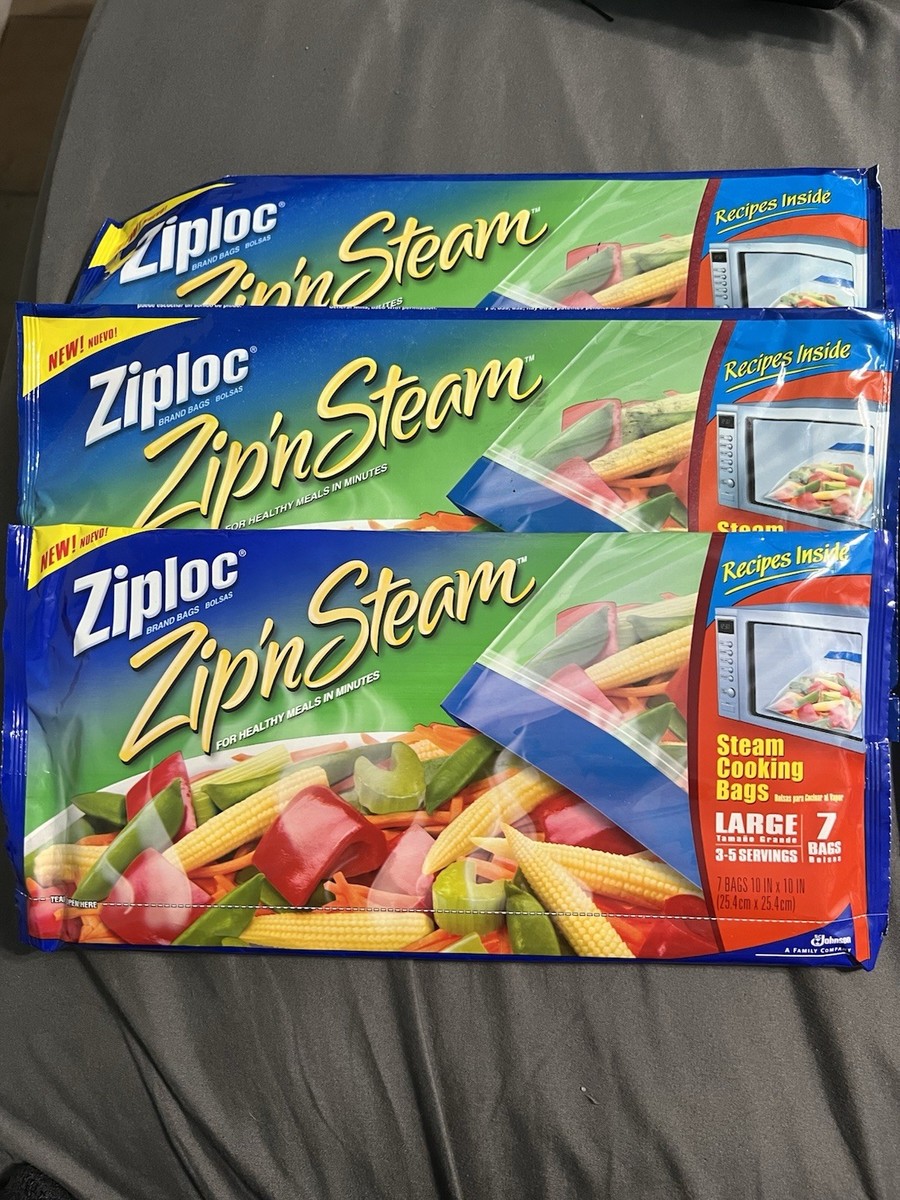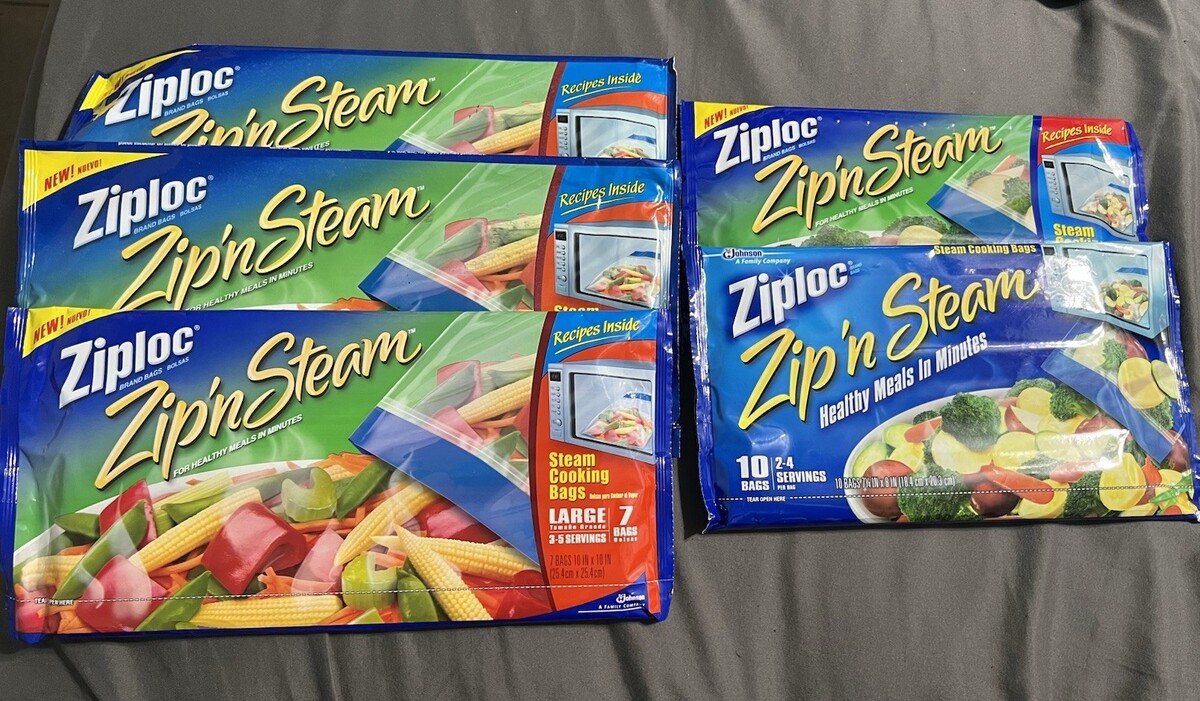 NEW 5 Packs Ziploc Zip 'N Steam 2 Med + 3 Lg and 49 similar items
