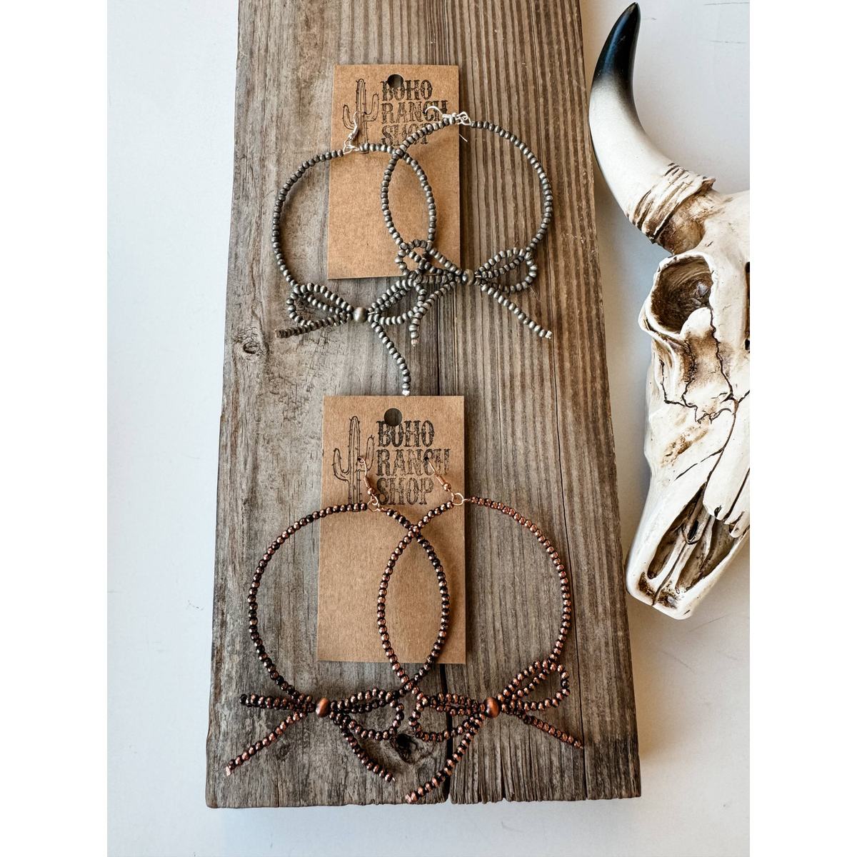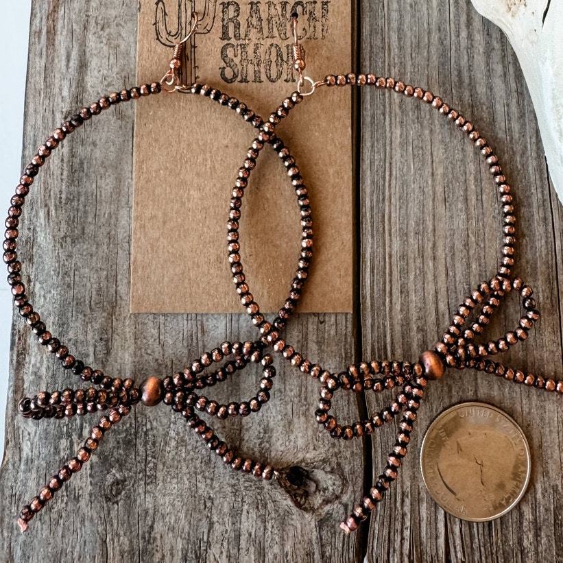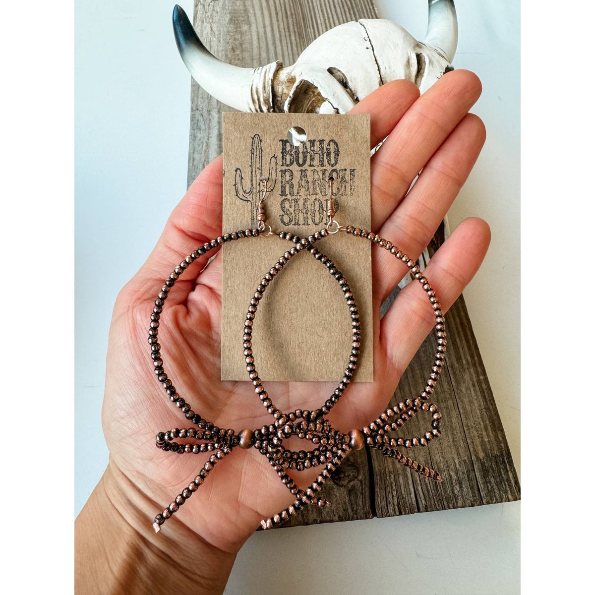 Western Navajo Style Pearl Bow Hoop Coquette Earrings Copper