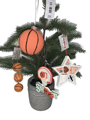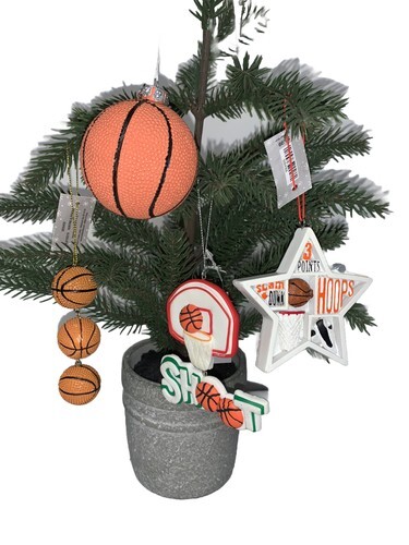 Add some festive cheer to your Christmas tree with this lot of four basketball ornaments from Hobby Lobby. These 2017 ornaments are perfect for sports enthusiasts and are sure to be a hit with basketball fans of all ages. The ornaments are made from high-quality materials and feature a detailed design that is both eye-catching and durable.
