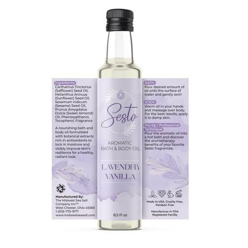 Sesto Aromatic Bath & Massage Oil - Lavender Vanilla - 8.5oz, with Label