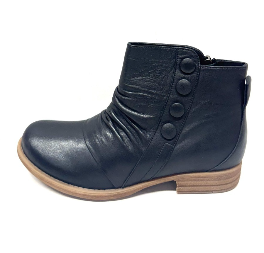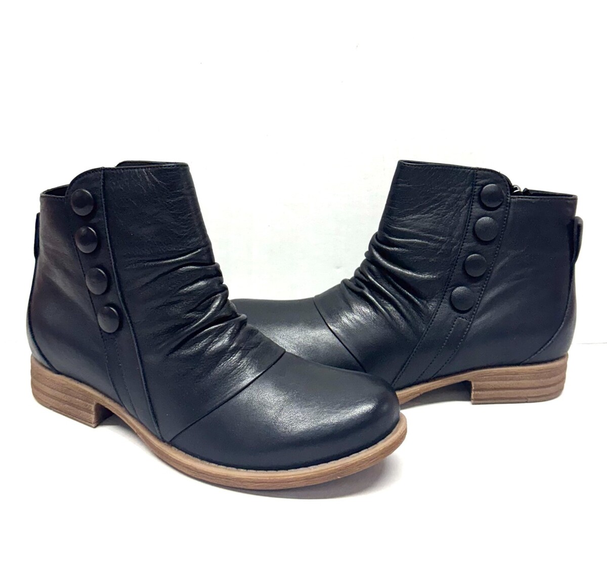 MIZ MOOZ SOFT RUCHED LEATHER BOOTIE SIDE ZIP BLACK 37EU / 7US NEW Z-86