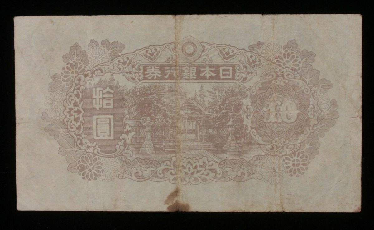 1945 Japan 10 Yen, Fine (F), Pick#77a (141x81)