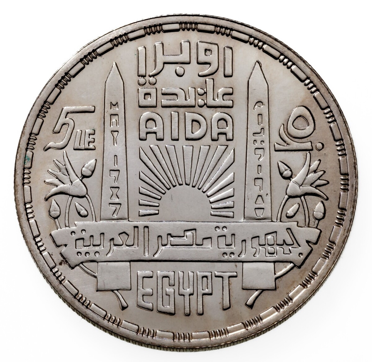 Moneda De Plata De 5 Libras De Egipto 1407-1987 En BU, Ópera Aida KM 611