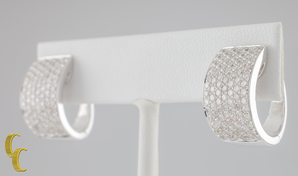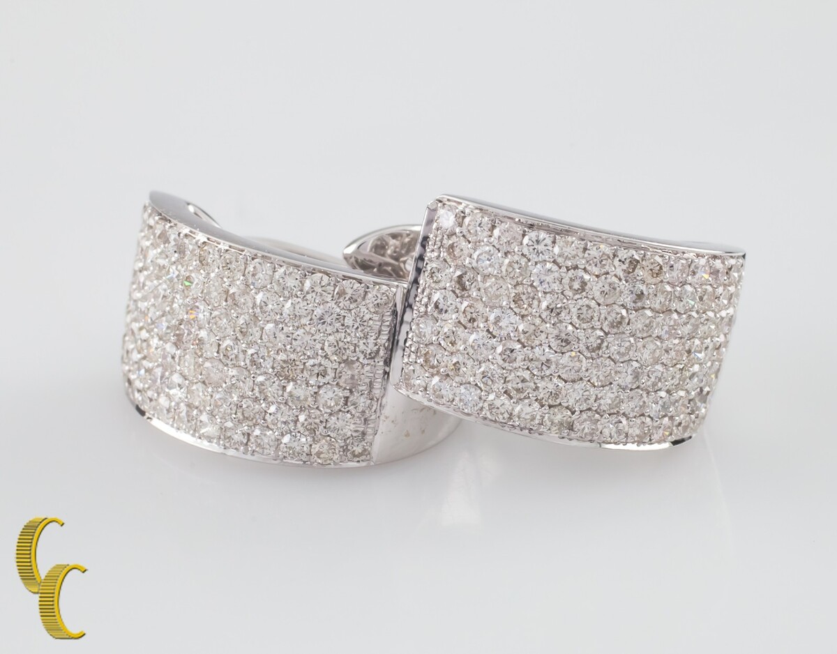 3,50 Karat Diamant Plaketten Creolen 14k Weißgold Ohrringe Mit Schnappverschluss