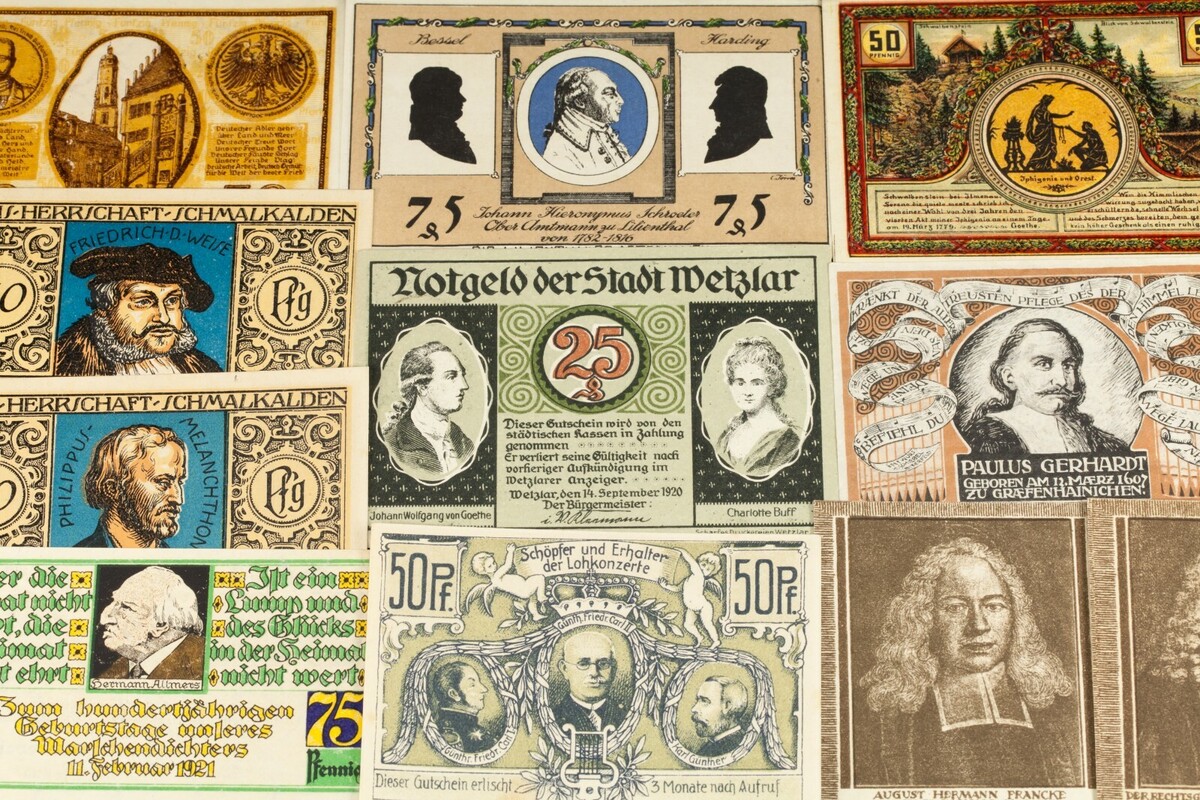 1920's Alemania Notgeld Dinero 25pc Famous Personas - Kiel, Sondershausen, Wetzl