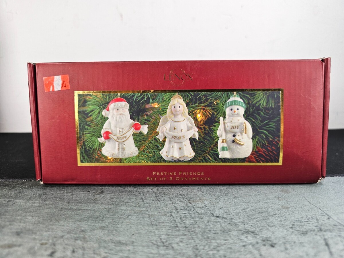 Lenox Festive Friends Vintage Christmas Ornaments Santa Angel Snowman Peace Joy