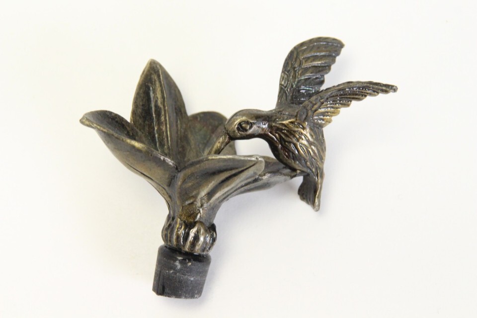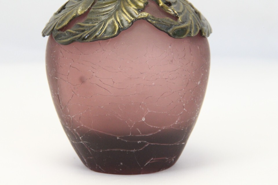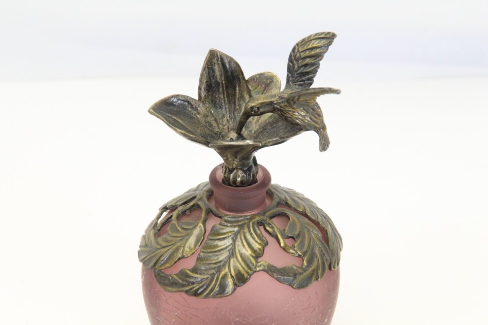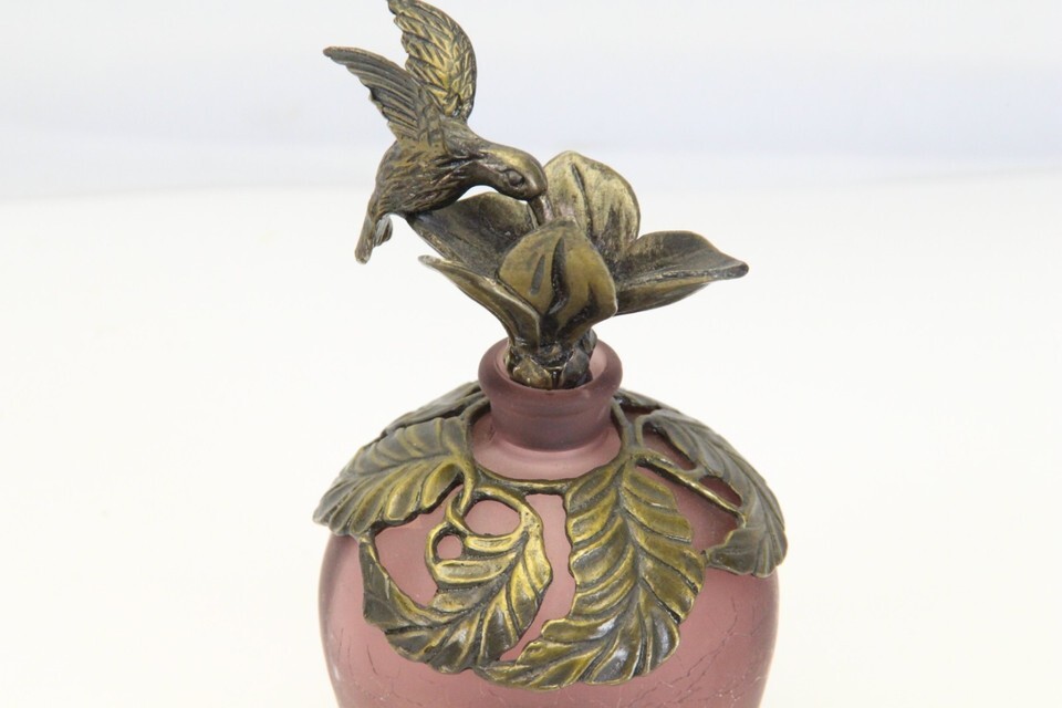 Perfume Bottle Amethyst Crackled Ice Glass Metal Flower Hummingbird Stopper