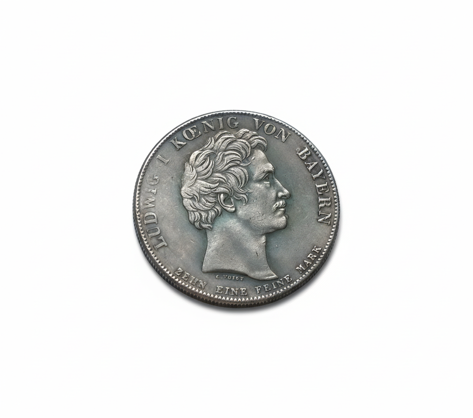 Esta exquisita medalla de arte restrike de 1832 conmemora un momento significativo en la historia europea: la ascension de Oton, príncipe de Baviera, como el primer rey de Grecia. El anverso presenta con orgullo un busto detallado de Luis I, rey de Baviera, padre de Oton. Alrededor del retrato real esta la inscripcion "LUDWIG I KOENIG VON BAYERN" y "TEEN EIN FINE MARK", que indica su contexto historico dentro de la numismatica bavara. El reverso representa bellamente a Oton, acompañado por un leon, recibiendo una corona, que simboliza su nuevo papel, junto a una figura que representa a Grecia con su emblema nacional. La inscripcion "OTTO PRINZ V. BAYERN GRECHENLANDS FIRST KONIG" establece firmemente el evento historico que celebra. Fechada en 1832, esta pieza de coleccion ofrece una conexion tangible con el panorama político de Europa de principios del siglo XIX. Esta ficha historica similar a una prueba es un excelente artículo de coleccionista, ideal para entusiastas de la historia europea y el arte numismatico. Sirve como una fascinante pieza conmemorativa, que muestra una artesanía intrincada y un significado historico. Una adquisicion verdaderamente única para cualquier coleccionista serio. Palabras clave: restriccion, coleccionable, medalla, historico, conmemorativo, numismatico, artículo de coleccionista, ficha, prueba, pieza de arte, historia europea, Baviera.