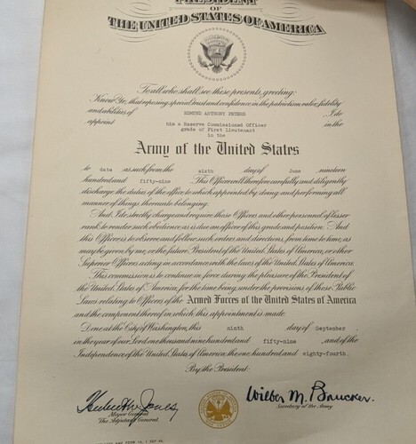 1956 1959 Reserve Commissioned Officer First/Second Lieutenant Papers W/ Case