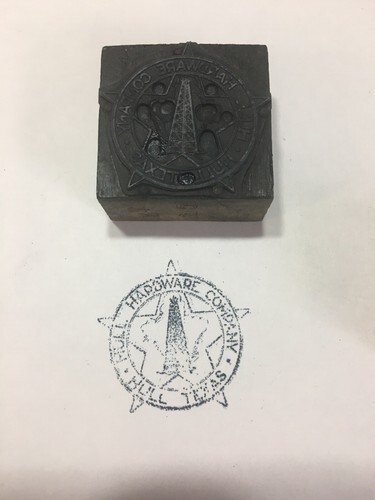 Vintage Printing Block Hull Hardware Company Hull Texas 1 3/4 x 1 3/4