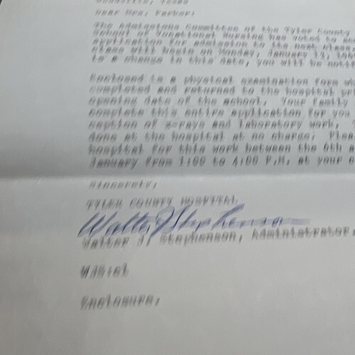 Vintage Letter Tyler County Hospital 1968 Walter J Stephenson
