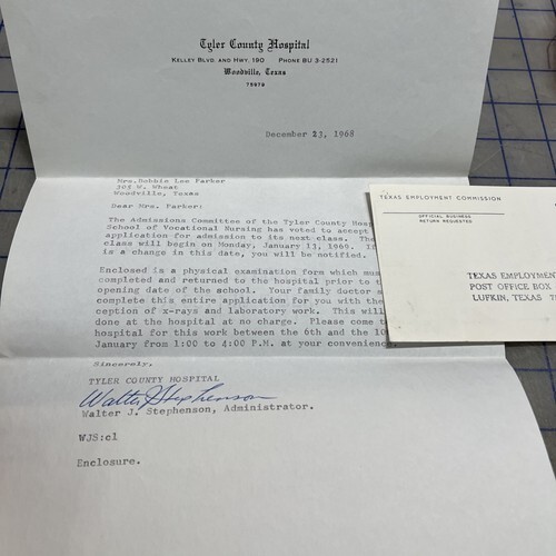 Vintage Letter Tyler County Hospital 1968 and 40 similar items