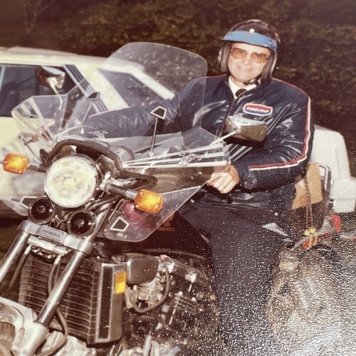 Vintage Photograph Man On Honda Motorcycle Wearing Purolater Jacket