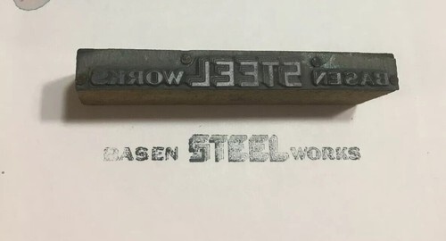 Letterpress Printing Block Basen Steel Works 2 3/4” x 5/16”