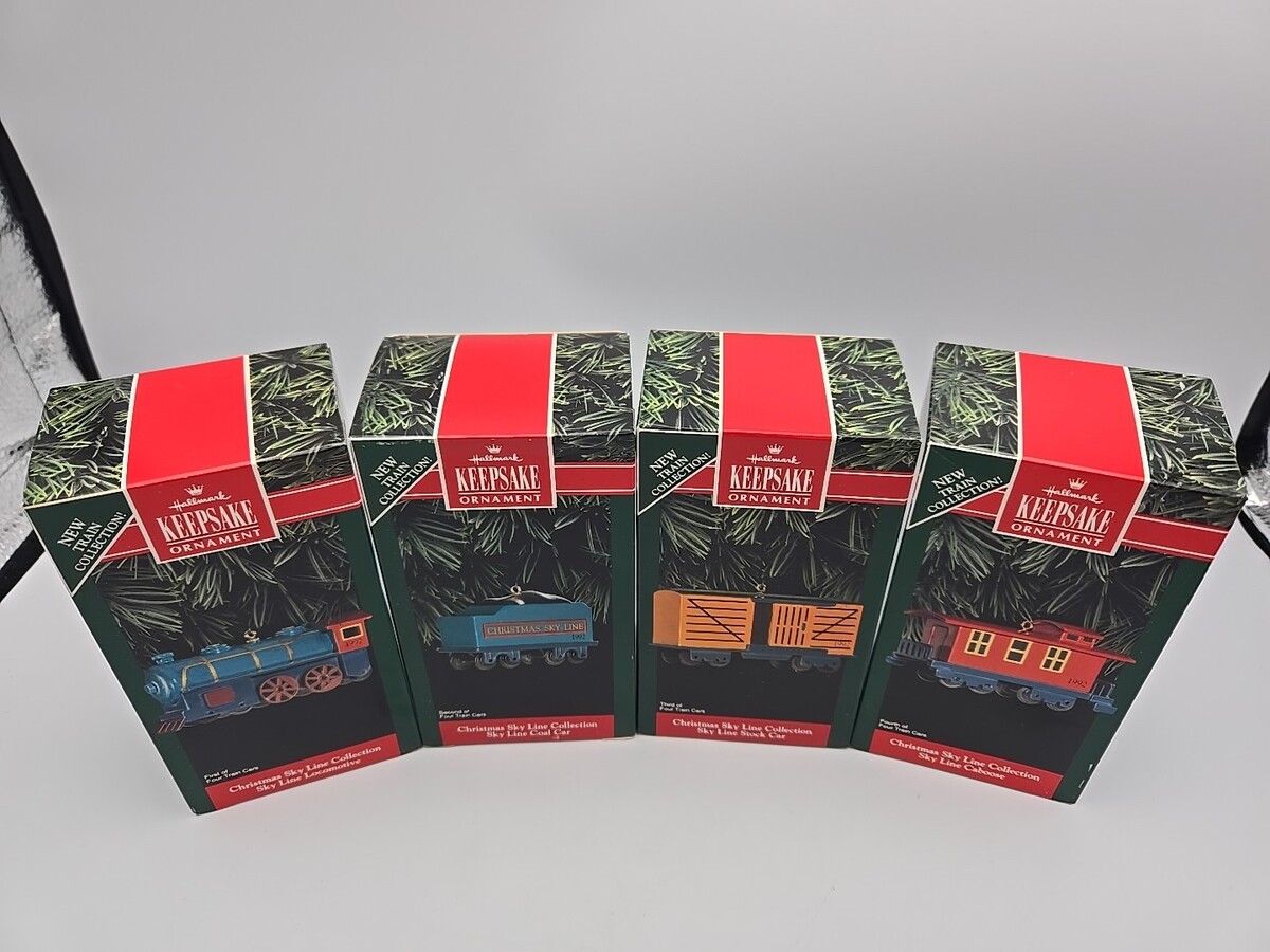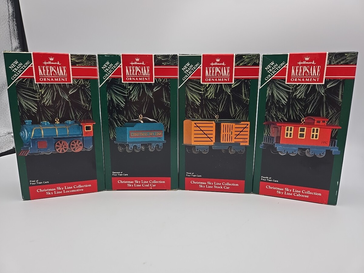 Full Set 4 Hallmark Keepsake 1992 Christmas Sky Line Collection Train Ornaments