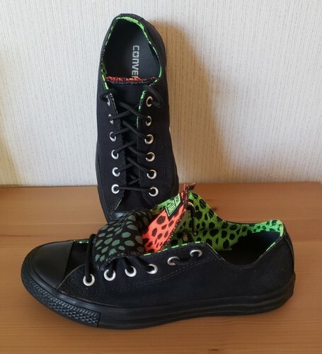 Converse All Star Sneakers Womens 9.5 Black Cheetah Chuck Taylor Double Tongue