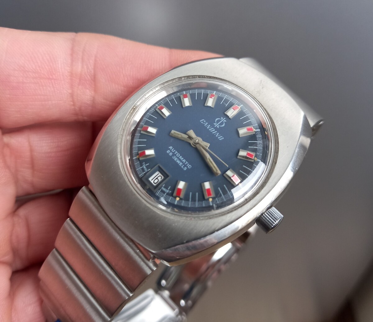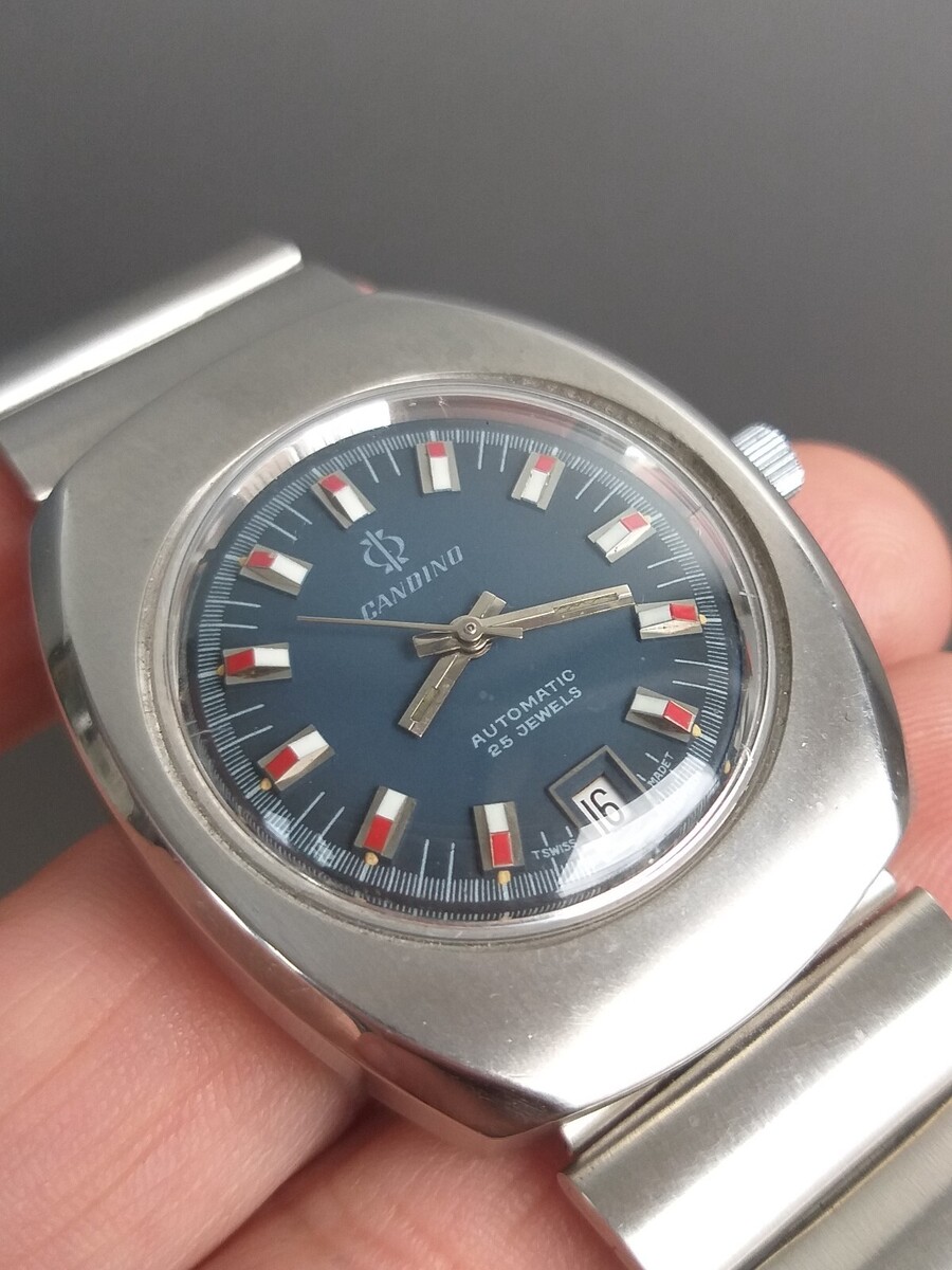 Vintage 1970’s Candino Blue Dial Automatic Steel Watch ETA 2787 MINT