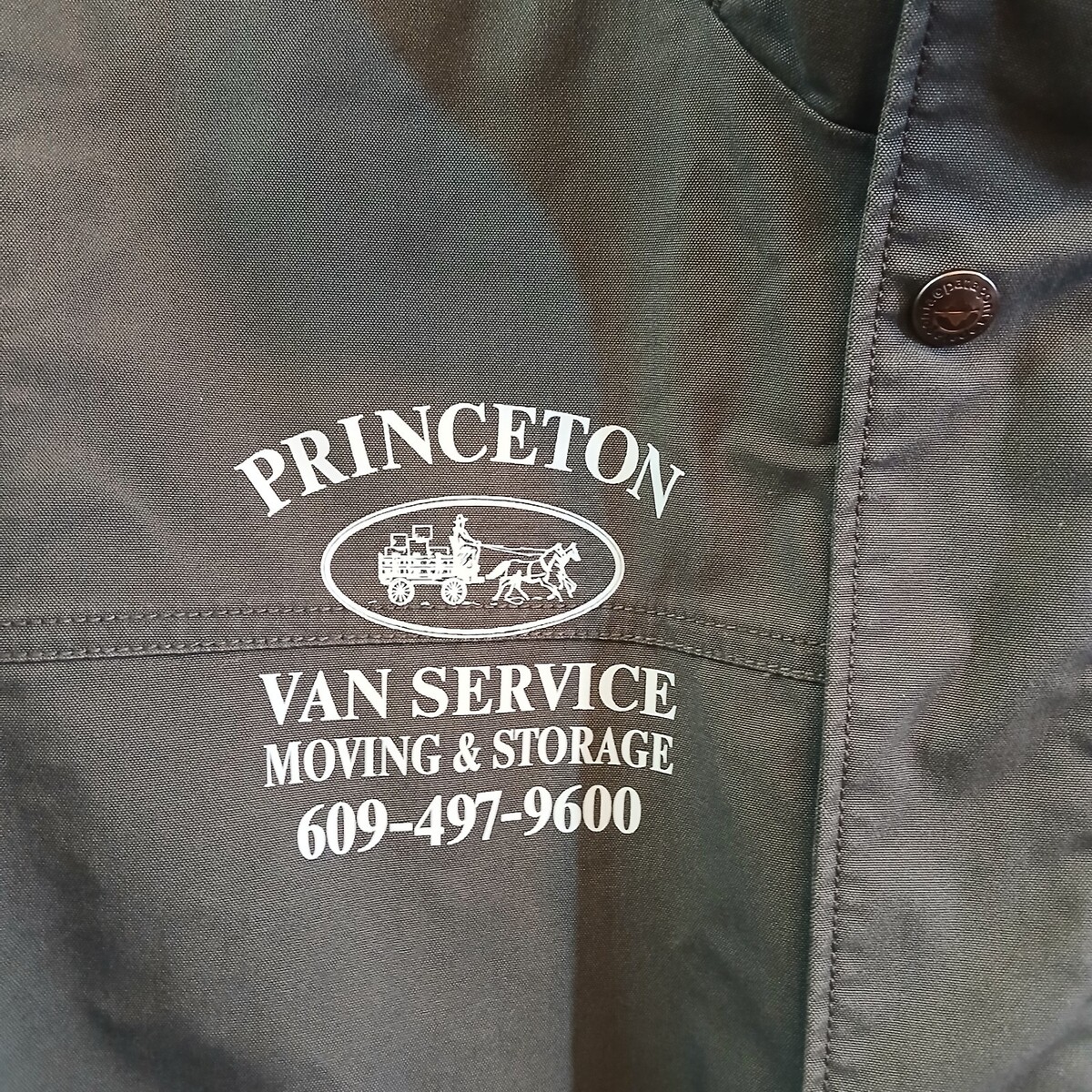 This one was originally made for a moving company, so it has an embroidered Princeton Van Service logo on the front and a big logo hit on the back ? perfect if you like real-deal workwear with a story, or you?ve got a soft spot for New Jersey truck / moving ephemera.