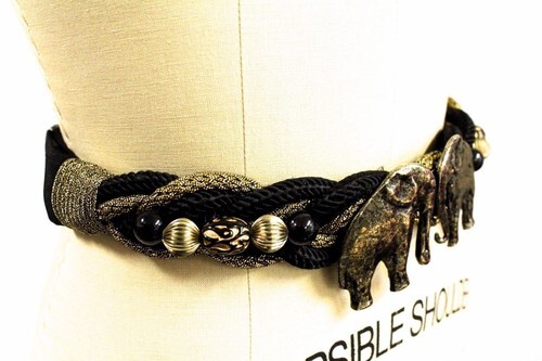 Black & Gold Metal Braided Cloth Elephant Carolyn Tanner VTG Adjustable Waist