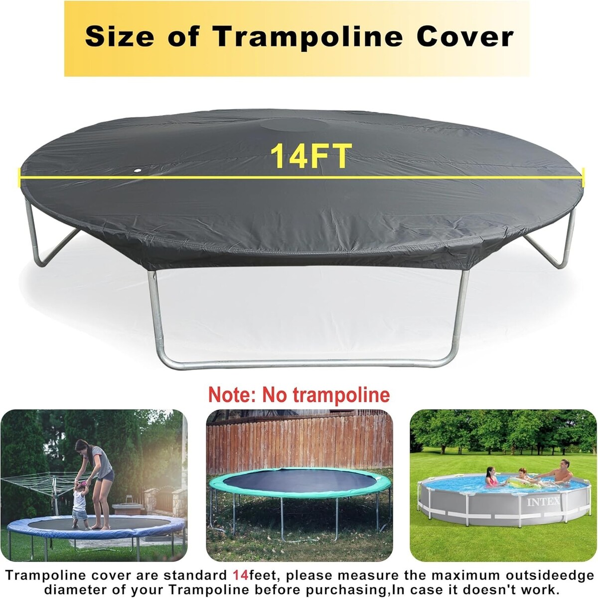 14 Ft Trampoline Cover 8-16 Ft Trampoline Winter Cover, Easy to Install Trampoline Protective Cover, Waterproof Trampoline Covers, Anti-UV, Snow, Dust-Proof Trampoline Weather Cover
