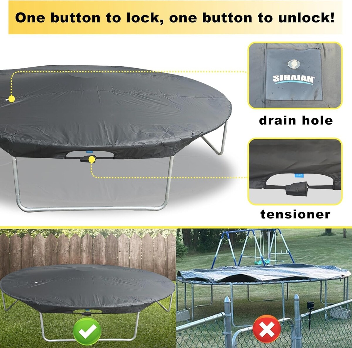 Round Trampoline Weather Rain Protective Cover 14 Ft Trampoline Cover 8-16 Ft