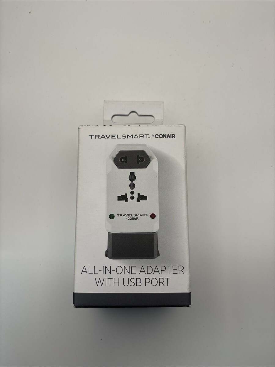 Travel Smart by Conair All-in-One Adapter With USB Port~Open box