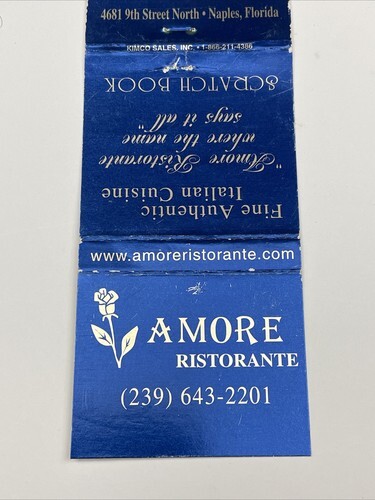 Matchbook Cover AMORE Ristorante Fine Authentic Cuisine Naples, FL Unstruck gmg