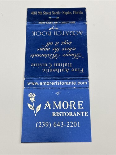 Matchbook Cover AMORE Ristorante Fine and 50 similar items