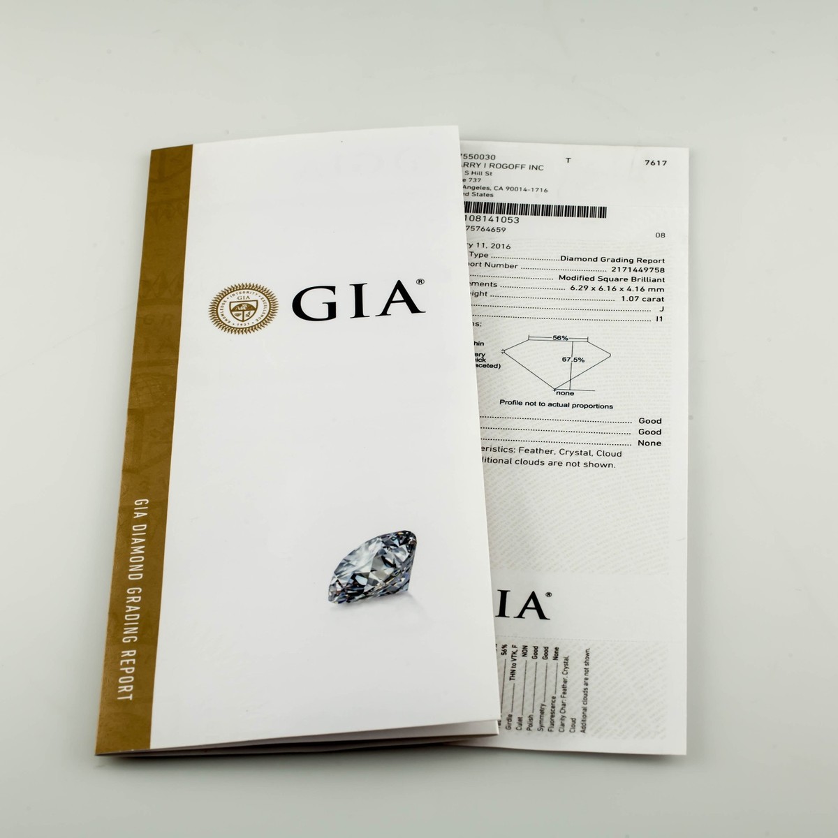 1.07 Carat Loose J / I1 Square Modified Brilliant Diamond GIA Certified