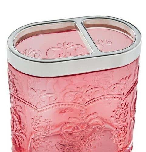 Pioneer Woman ~ Embossed ~ AMELIA ~ CORAL ~ Glass ~ Toothbrush Holder