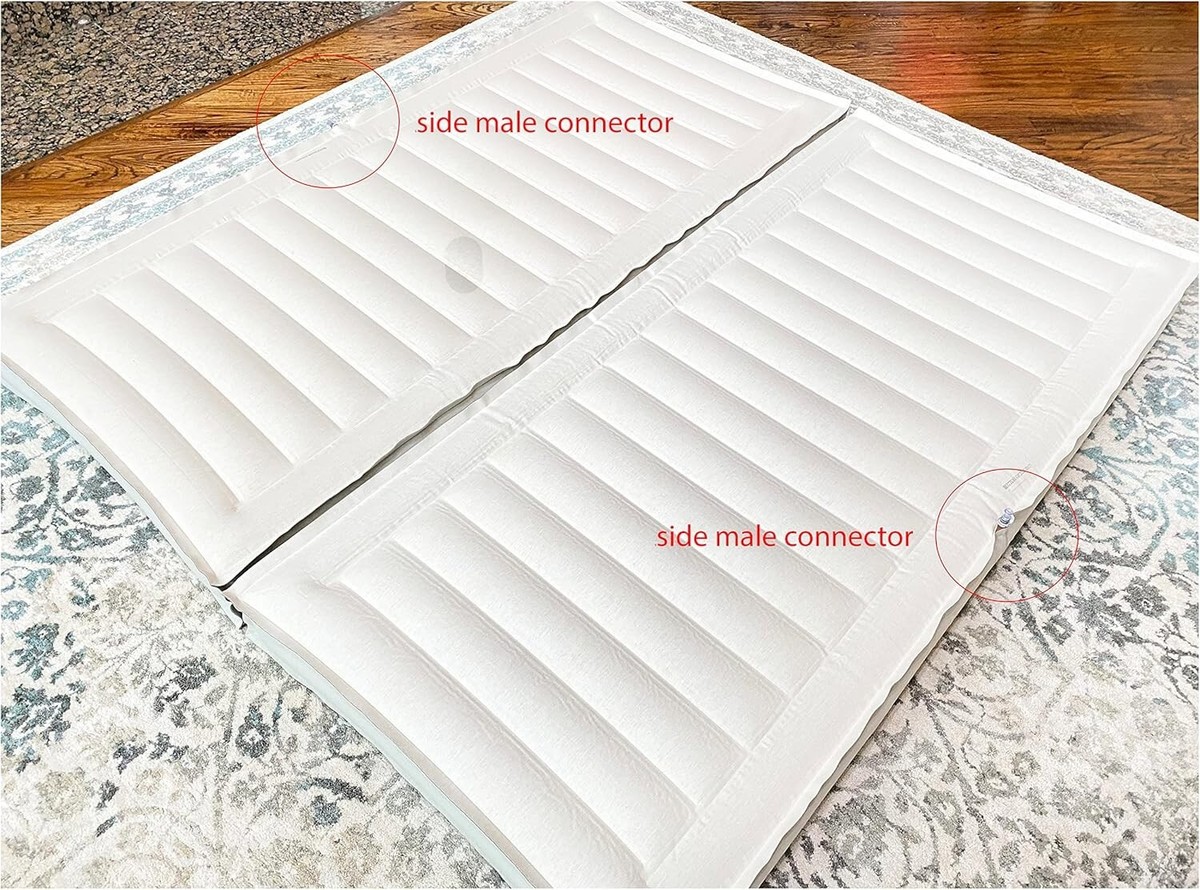 Description. Pair of genuine Select Comfort replacement air chambers for Sleep Number King size 360 bed model. It's recommended that you have a 360 King size bed model, the male connector is on the side and not at the head, if yours is at the head an extension hose is required that we can provide upon request, contact us. These air chambers are in great clean working condition, with no air leaks. Model S 927 E-KING, 1 air bladder size is 72"x34"x6" ( inflated ), both put side by side are 72"x68"x6". Connectors have a dual o ring for a better air seal. Both air chambers zip together in the middle to remove the gap. For any questions please do not hesitate to contact us for a quick answer. We offer 1 Year Warranty for these air chambers plus a TRADE IN option. This listing is just for the 2 bladders that zip together. Select Comfort Air bed pump firmness control system ( mattress inflator ) is not included but available in our other listings.