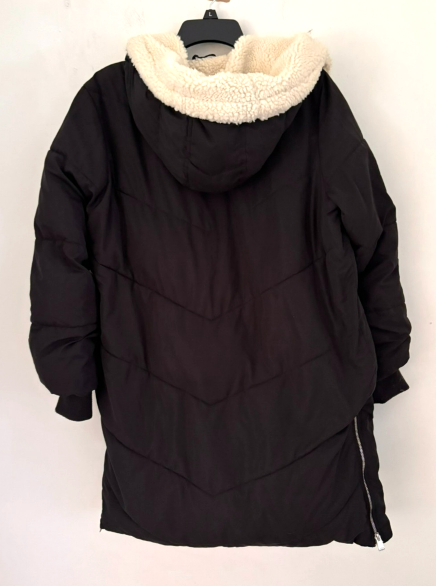 Garage Women’s M Black Sherpa Lined Hooded Puffer Coat Long Winter Jacket Warm