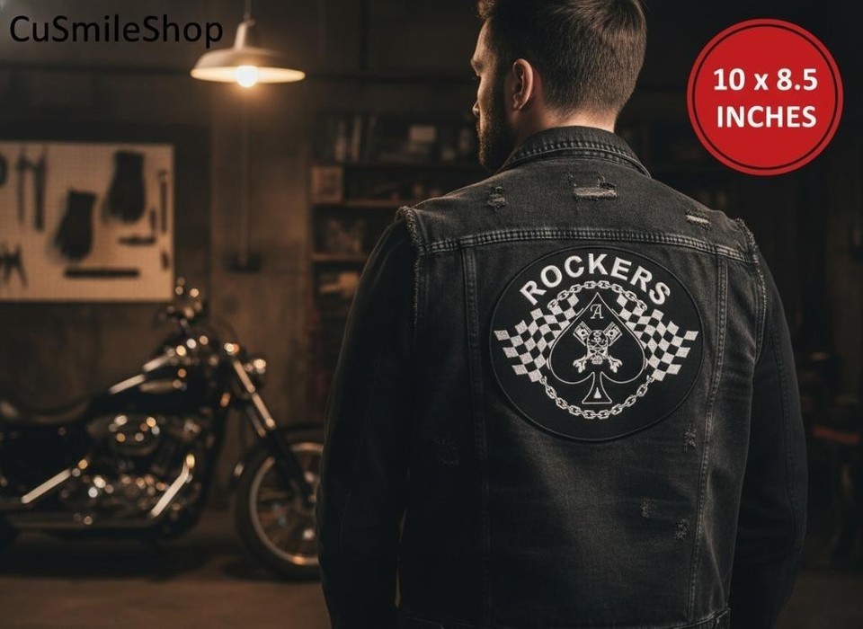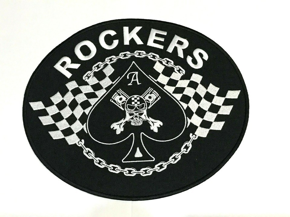 Rockers Biker Patch Motorcycle Club XXL 10 Inch Ace Of Spades Cafe Racer Skull Checkered Flag Embroidered Patches Iron Or Sew On Jacket Vest t Shirt Hoodie Applique Embroidery Emblem