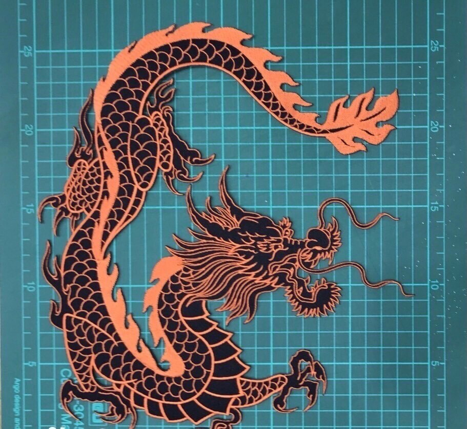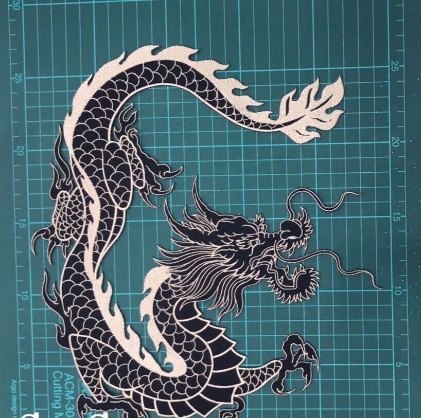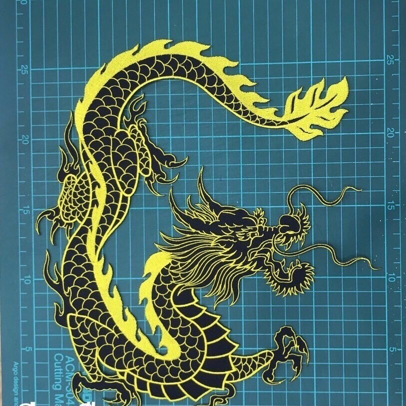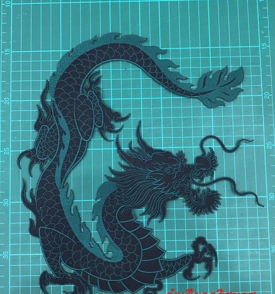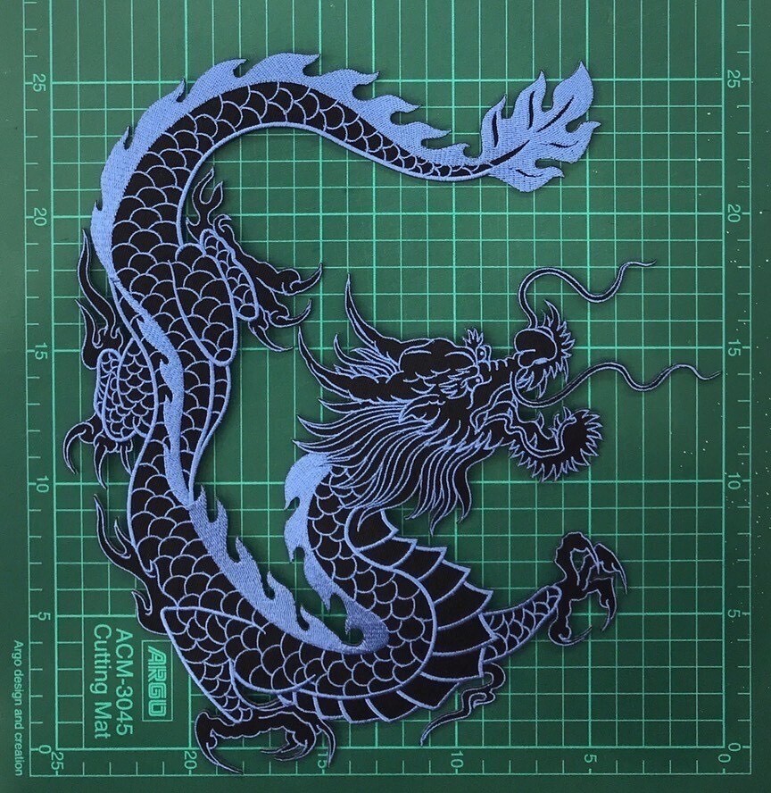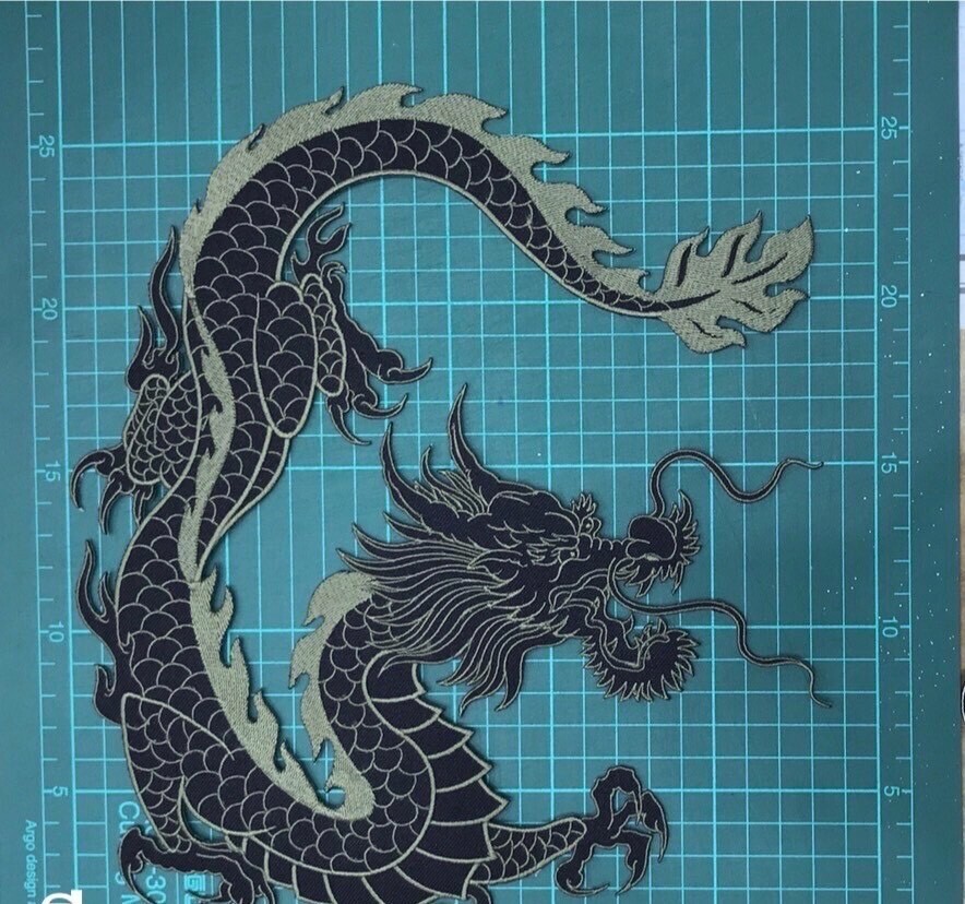XL Black Dragon Patch Iron-On Embroidered Applique for Jacket Back Embroidery