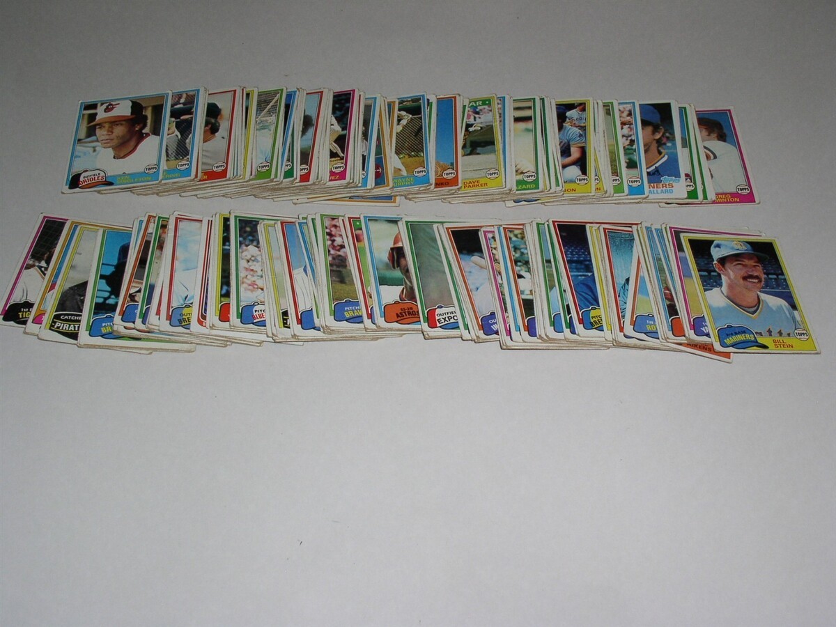 This is a huge lot of approximately 225 various baseball cards. Dated 1981 Topps. A few (with the green backing), are dated 1982. There are some duplicates.