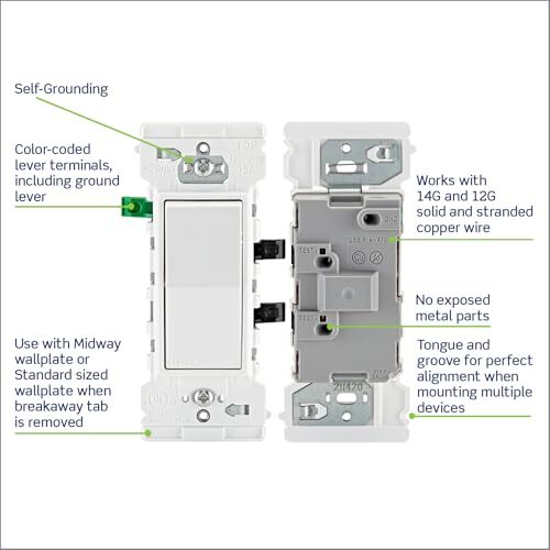Leviton Lever Edge 15 Amp Single Pole Rocker and similar items
