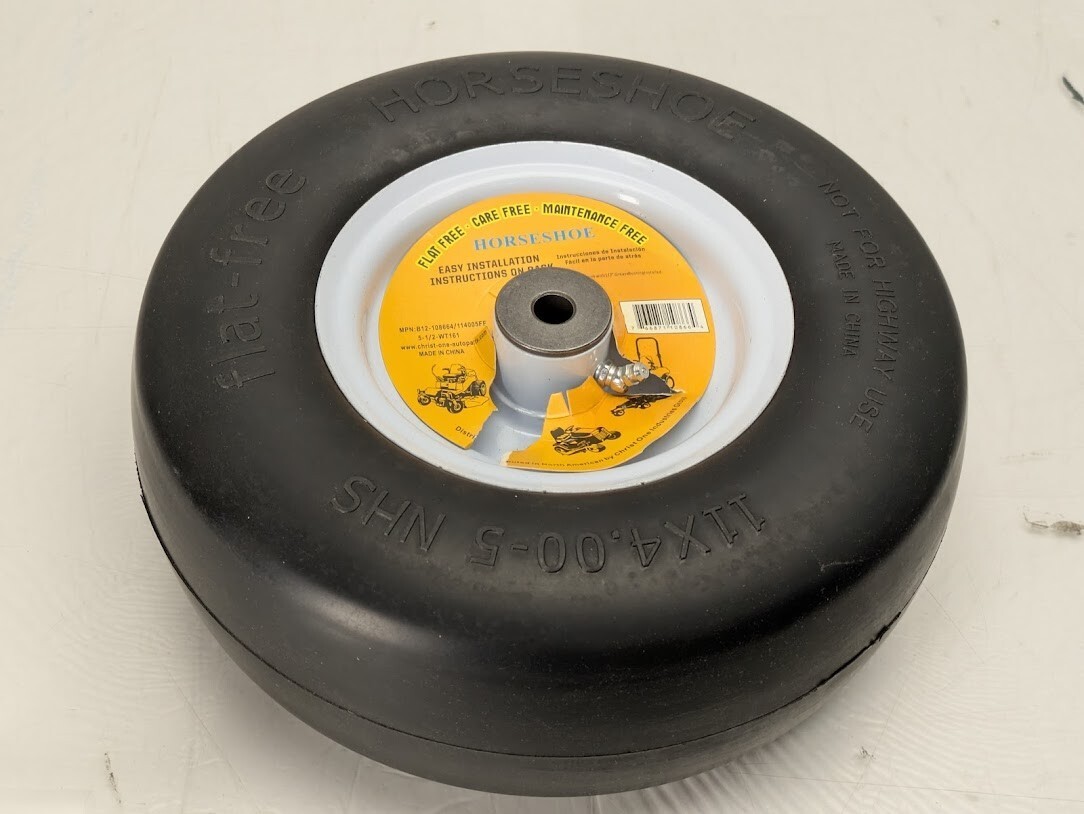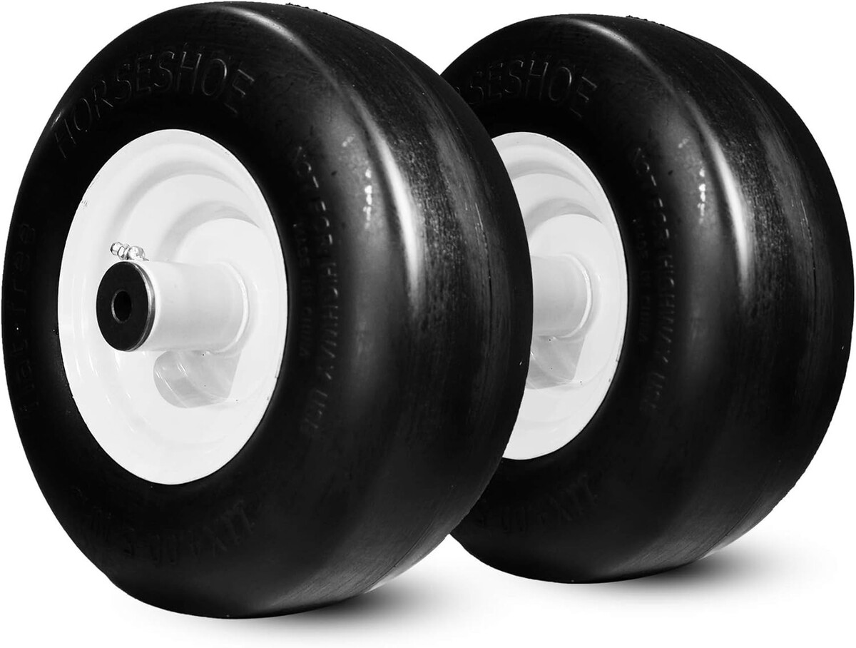 Pack of 2 Horseshoe 11 x 4.00-5“ Flat-Free Lawn Mower Smooth Tires, Steel Rim